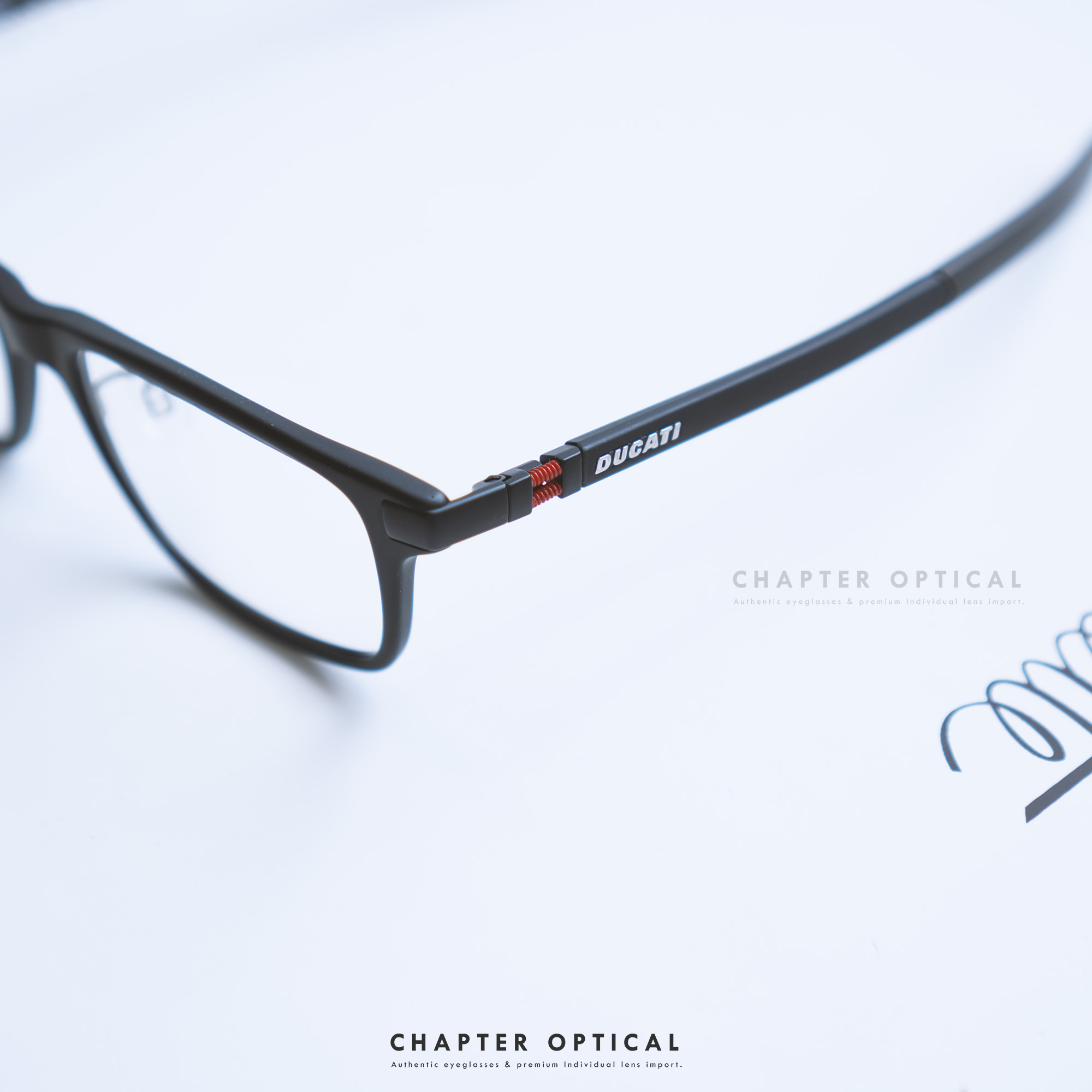 แต่การใส่แล้วแทบไม่ต้องปรับตัวนั้น ไม่ได้มีองค์ประกอบจากค่าสายตาหรือเลนส์ที่เลือกเพียงอย่างเดียว การเลือกกรอบก็สำคัญเช่นกัน เราได้เลือกกรอบแว่นแบรนด์ Ducati ให้กับคุณผู้ชายท่านนี้ เพราะแว่นดีไซน์สวยงาม ขาตรงแบบสปอร์ตพร้อมทั้งมีแป้นจมูกซึ่งรองรับสำหรับการทำแว่นโปรเกรสซีฟ กรอบแว่นมีความโค้งไม่เกินค่ากลางในการตัดโปรเกรสซีฟ รวมถึงมุมเทหน้าแว่นที่ไม่มากเกินไปจนติดแก้มจึงสร้างระยะการเหลือบตาหรือมองใกล้ได้ดีเลือกแว่นตัวนี้ไม่ผิดหวังจริงๆ