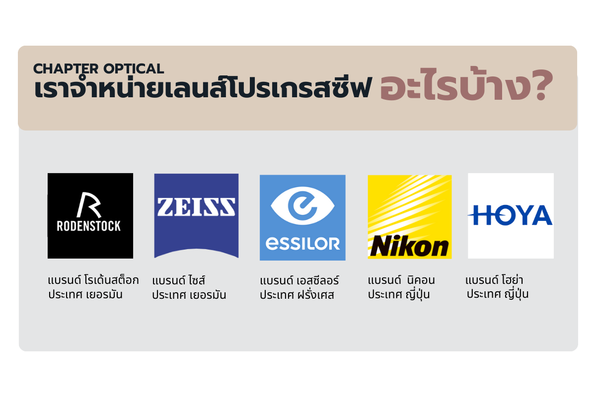 5 แบรนด์ที่เราจำหน่ายเป็นหลักและเป็นเลนส์โปรเกรสซีฟที่มีคุณภาพดีการันตีในเรื่องของการใช้งานได้เป็นอย่างดี