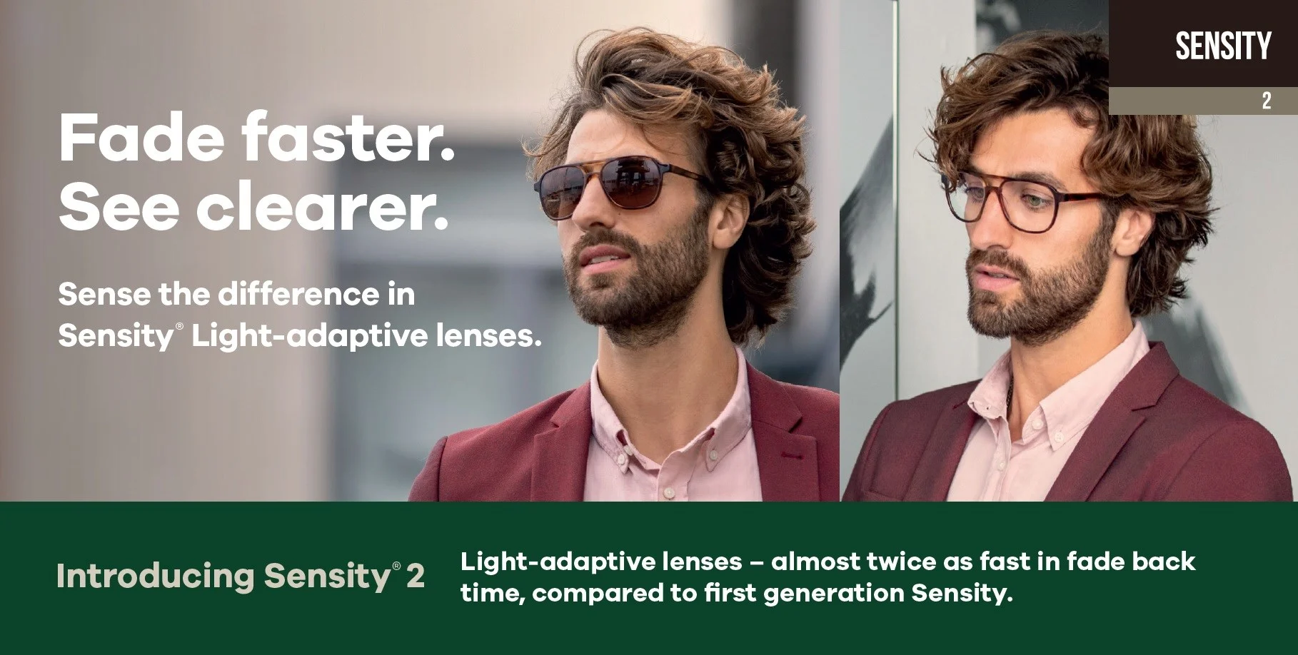 Photochromic / Transition / Sensity เพิ่มคุณสมบัติของเลนส์ให้สามารถเปลี่ยนสีเข้มขึ้นได้เมื่อใส่แว่นออกแดด เมื่อเลนส์ของเราโดนแดดเลนส์จะมีสีเข้มขึ้นเสมือนแว่นกันแดดและคลายตัวเป็นเลนส์ใสๆเหมือนแว่นปกติเมื่อเราเข้าร่ม และยังป้องกันต้อเนื้อ ต้อลม ให้กับเราได้ด้วย
