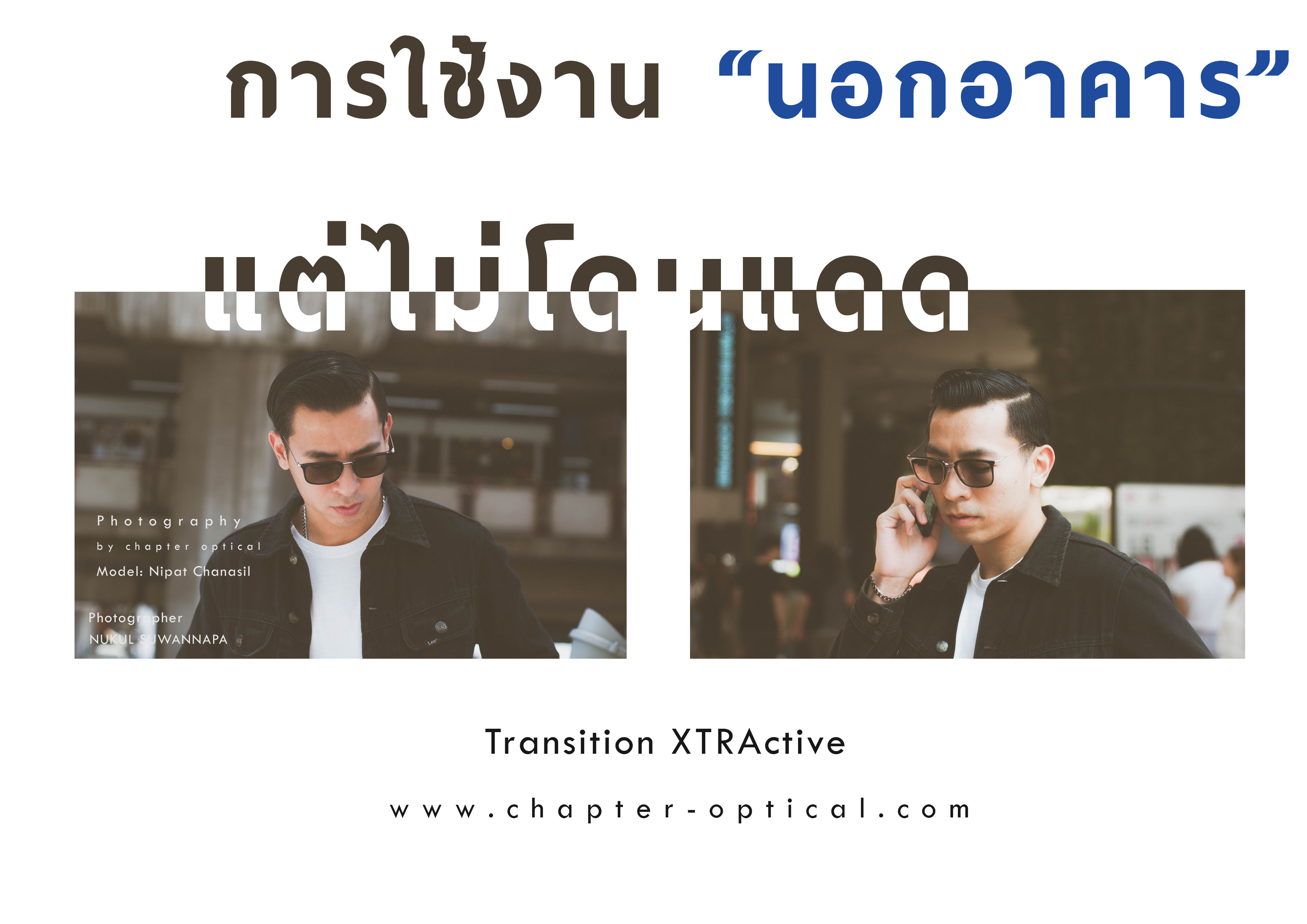 Crizal Transition XTRActive Coating เป็นโค็ตติ้งค์เลนส์คุณภาพสูงที่เรายกนิ้วให้เป็นเบอร์แรกเลยในกลุ่มเลนส์เปลี่ยนสีนี้ ซึ่ง Essilor ได้ก้าวข้ามเทคโนโลยีเดิมๆทำให้ผู้ใช้งานอย่างเรานั้นได้เลนส์คุณภาพดีมากใช้งาน ซึ่งตอบโจทย์การใช้งาน Indoor และ Outdoor ได้อย่างดี ช่วยให้สบายตาเมื่อออกกลางแจ้ง และยังช่วยให้ห่างไกลจากโรคต้อต่างๆด้วยการป้องกันยูวีถึง 400 นาโนเมตร เหมาะสำหรับผู้ที่ต้องทำงานในอาคาร ในร่ม ในออฟฟิศ รวมถึงบางเวลาต้องออกเช็ค Site งาน หรือต้อง outdoor activites ก็ตอบโจทย์ ไม่ต้องพกแว่นหลายอัน และยังช่วยให้แว่นสายตาธรรมดาๆของเราดูดีขึ้นอีกด้วย